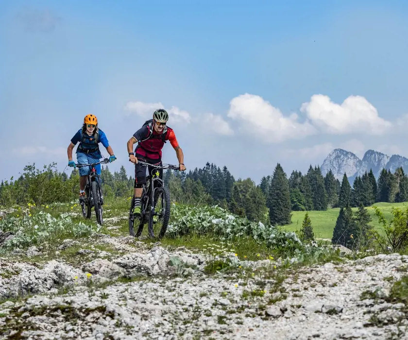 Respira a pieni polmoni l'aria fresca dell'Alpe Cimbra e a fine giornata sdraiati sulle sponde del suggestivo lago di Lavarone. Il nostro bike hotel ti aspetta!;